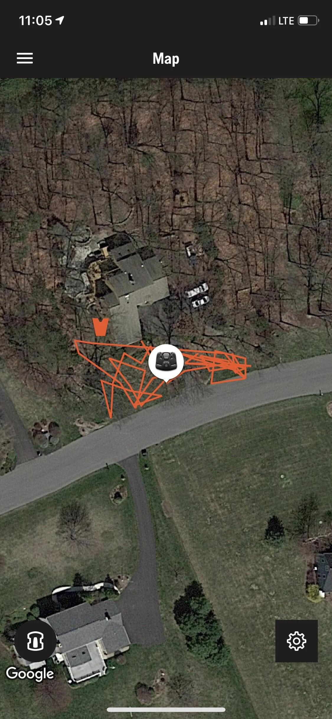 Eventually, I got it done, entered the PIN # that makes each unit safe against unwanted use or theft, and we got rolling. Super fun to watch it at first. Between watching in real life and on my phone, I got a bit of an addiction. So much to the point that while on vacation, my wife started to get mad at me when she saw me looking at the phone too much. She would say, “Are you looking at that lawnmower again?” I’d have to admit to my guilty pleasure. It would have been easier on her if I was just having an affair.