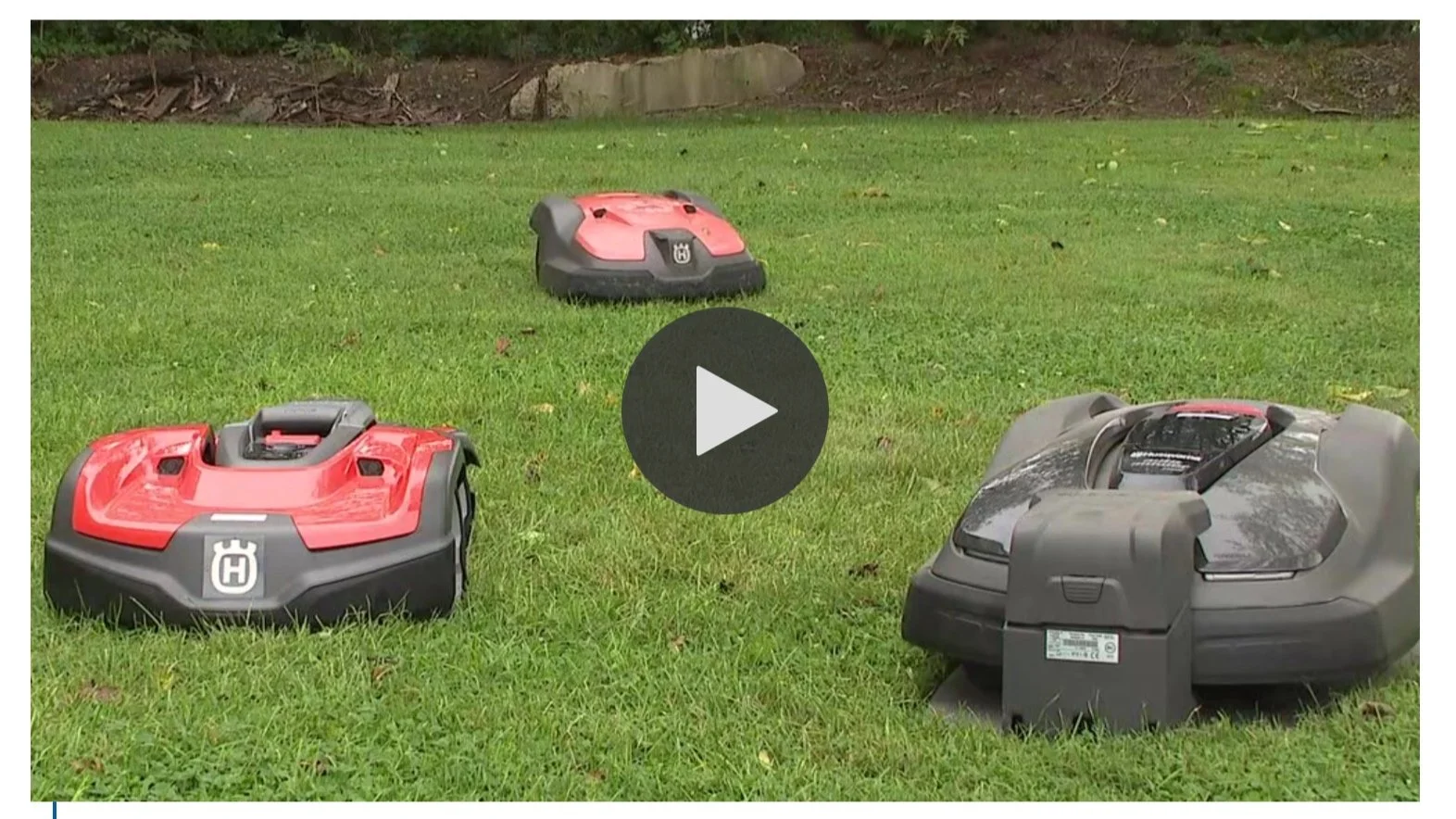 He said the robots can mow about and acre and a half on a charge, but less if they encounter obstacles like rocks, shrubs and trees.